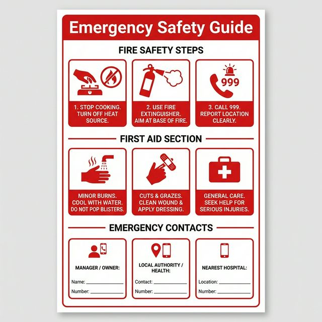 - স্টলে আগুন: বালি/অগ্নি নির্বাপক ব্যবহার + কাস্টমার সরিয়ে দেওয়া।